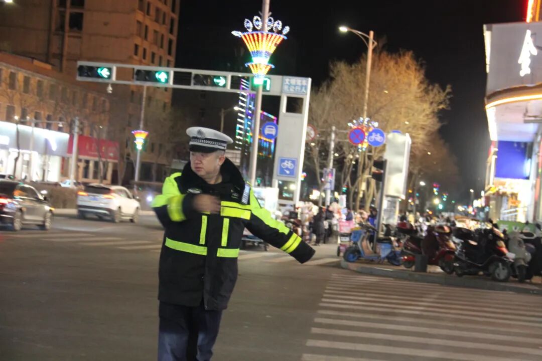 山阴县公安局交通管理大队民警对涉及夜晚群体活动的重点路口路段和大型活动场所、商业圈、人流密集场所周边安排专门警力指挥疏导,并对酒醉驾、毒驾、涉牌涉证、三超一疲劳等突出交通违法进行纠正处罚,为群众夜间出行提供更加安全、畅通的道路交通环境。