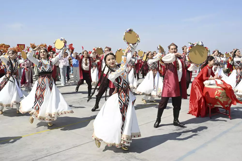 2025年9月23日下午,群众载歌载舞,喜迎新疆维吾尔自治区成立70周年。新华社记者 谢环驰 摄