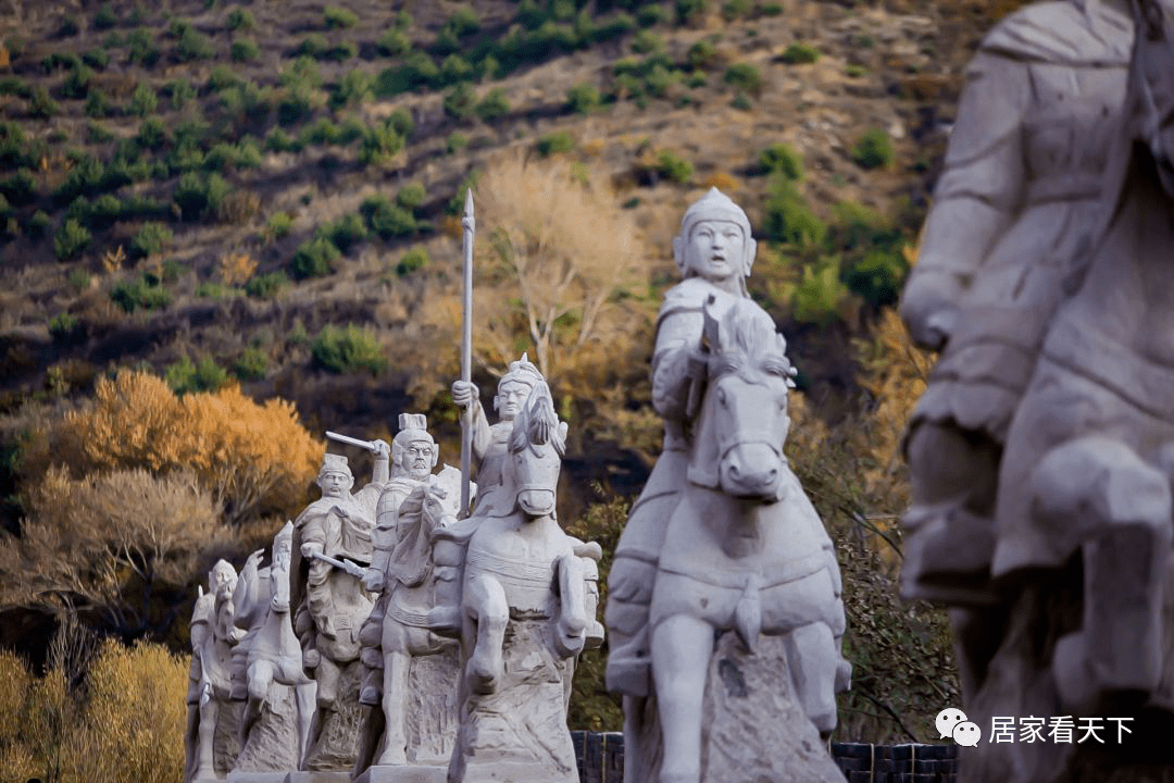 名人壁对面的关桥两侧是24位杨家将人物塑像,均为4.5米高的花岗岩石雕,这些人物雕像形象生动地刻画了杨家将不同人物的性格特点。西侧是11位杨家男将,东侧是13位杨家女将,这些雕像向人们诉说着杨家将镇守边关、保家卫国的久远历史。