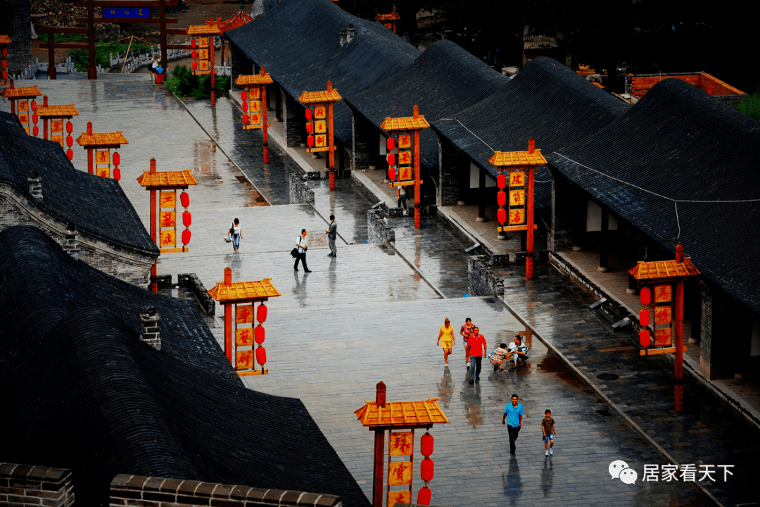 边贸街是由70多间仿明代建筑所构成,这里主要展示具有雁门关地区特色的手工艺制品和纪念品,同时也再现了当年边关贸易的盛况,是一条具有浓郁地方特色的风情街。街的尽头还有一座牌坊,牌坊正中的额坊是“通南江”三个字,表示经过雁门关就可以通达大江南北。