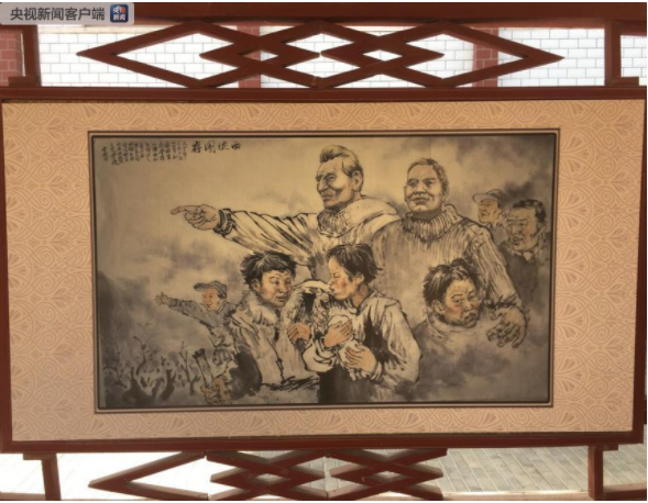 △中央红军长征出发纪念馆展出的“草鞋地图”。这是红军长征胜利80周年时,用红五星和80双草鞋绘出的中国地图。(央视记者邢彬拍摄)