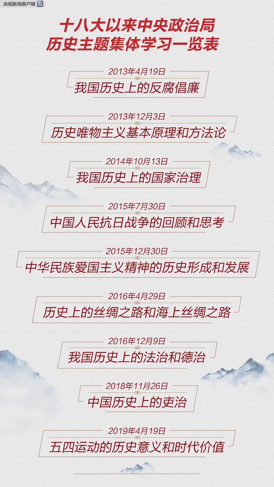 重视对历史的学习和对历史经验的总结与运用,习近平总书记一以贯之。《时政新闻眼》梳理发现,党的十八大以来,在他主持的中央政治局59次集体学习中,至少有9次就是以历史为主题。“课堂”就设在中南海里。