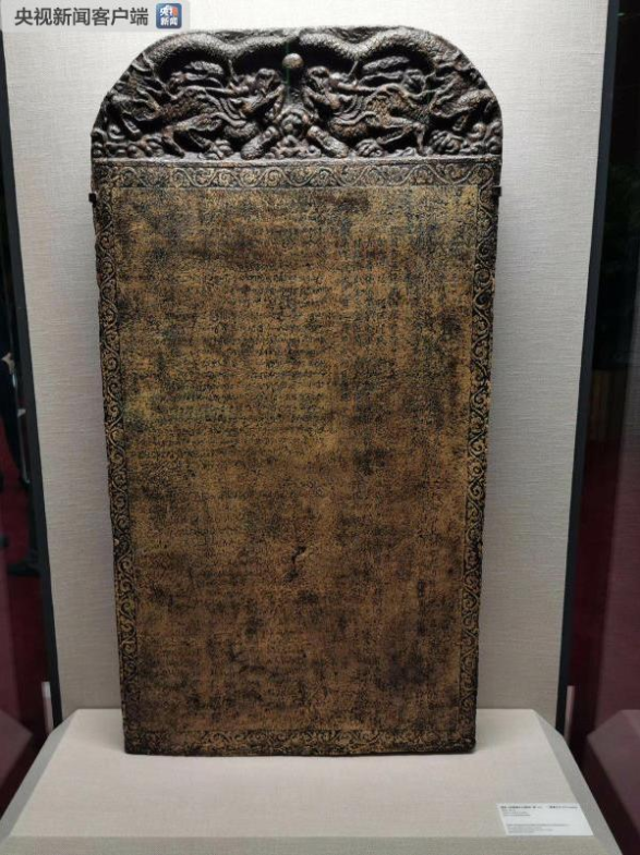 △郑和《布施锡兰山佛寺碑》(复制品),原碑于1409年制成,出土于斯里兰卡加勒港,现藏于斯里兰卡科伦坡国家博物馆。(央视记者李铮拍摄)