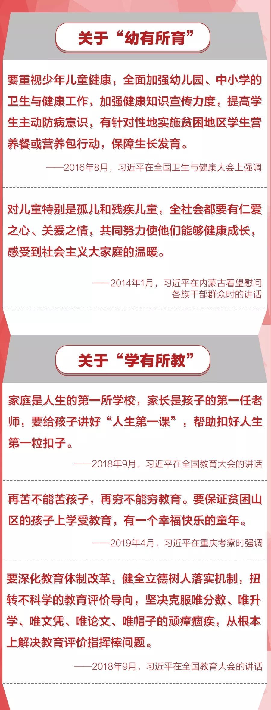 在他心中,民生问题大于天衙 斋卧听萧萧竹,疑是民间疾苦声。些小吾曹州县吏,一枝一叶总关情。这首郑板桥的题画诗,习近平曾经6次在讲话文章中引用,充分体现了他的为民情怀。习近平总书记多次指出,必须多谋民生之利、多解民生之忧。 要在幼有所育、学有所教、劳有所得、病有所医、老有所养、住有所居、弱有所扶上不断取得新进展。